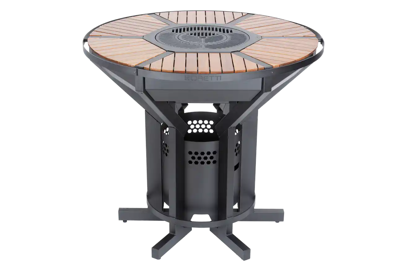 Exclusif et unique ! Le Focolare est une fusion extraordinaire d'une table de salle à manger haute et d'un barbecue intégré. Ce barbecue peut être transformé en une table de salon confortable. Son design unique et élégant fait de ce barbecue une véritable attraction.