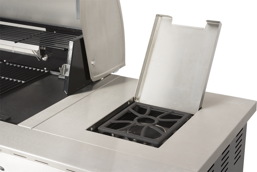La Boretti Luciano est la cuisine extérieure la plus complète de la Collezione Giardino. Par exemple, ce modèle dispose de tiroirs de rangement et d'un espace de rangement supplémentaire pour la bouteille de gaz ou le couvercle. La caractéristique la plus unique du Luciano est qu'il dispose d'un réfrigérateur pour conserver les plats et les boissons au frais. Le barbecue à gaz dispose d'une grande surface de cuisson. Cela permet de profiter d'une soirée barbecue agréable avec toute la famille et les amis. Avec pas moins de sept brûleurs : quatre brûleurs principaux, un brûleur latéral à gaz, un brûleur arrière à infrarouge et un brûleur inférieur à infrarouge, rien n'est trop difficile à préparer.