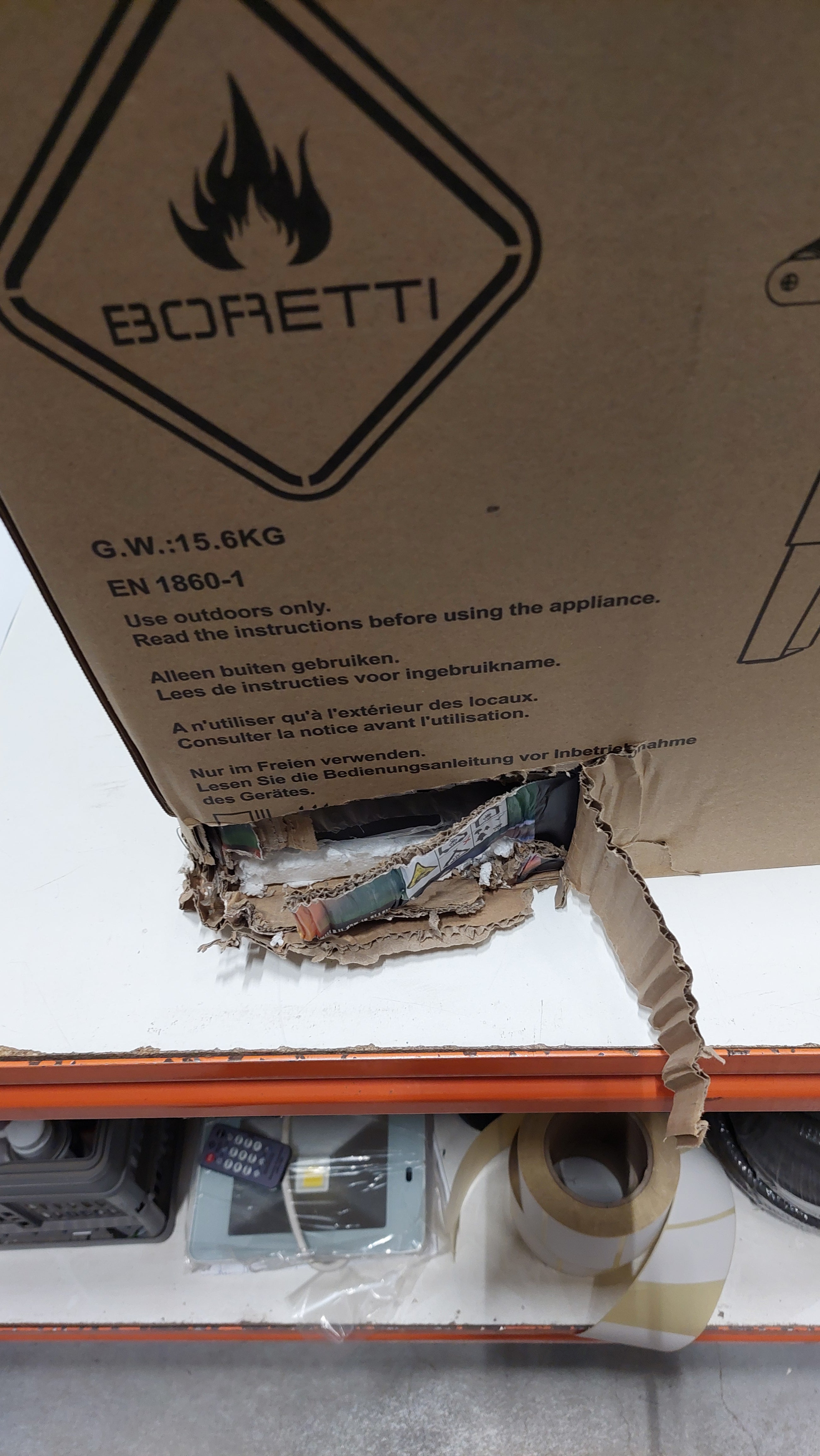 De getoonde foto toont een voorbeeld van de meest voorkomende verpakkingsschade, zodat u een goed beeld krijgt van wat u kunt verwachten. De daadwerkelijke schade aan de verpakking kan per exemplaar verschillen.