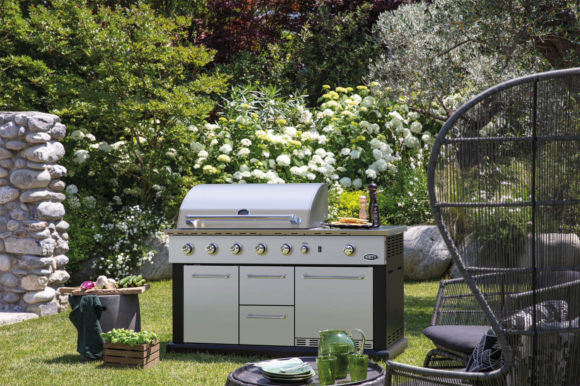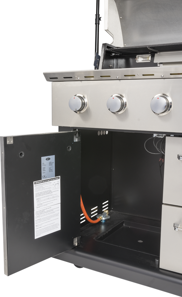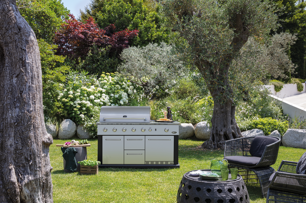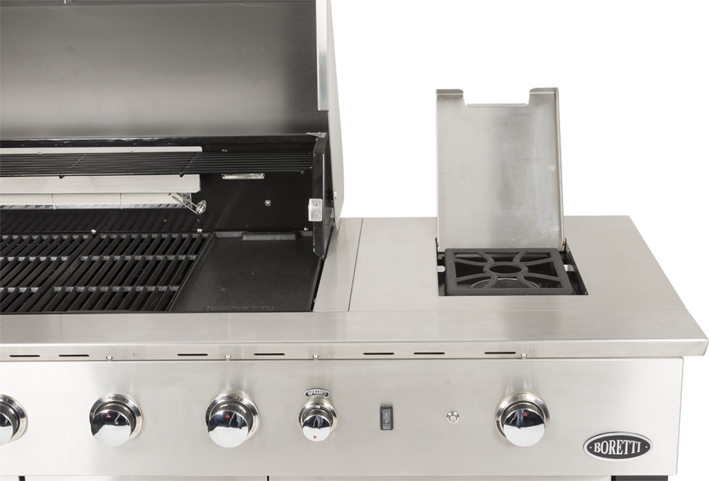 De Boretti Luciano is de meest uitgebreide buitenkeuken in de Collezione Giardino. Zo beschikt dit model over opberglades en extra opbergruimte voor de gasfles of hoes. De meest unieke eigenschap is dat de Luciano een koelkast heeft om gerechten en drankjes koud te houden. De gasbarbecue heeft een groot grilloppervlak. Zo is het mogelijk om met het hele gezin en vrienden te genieten van een gezellige barbecueavond. Met maar liefst zeven branders; vier hoofdbranders, een gas zijbrander, een infrarood achterbrander én een infrarood bodembrander, is niets te gek om te bereiden.