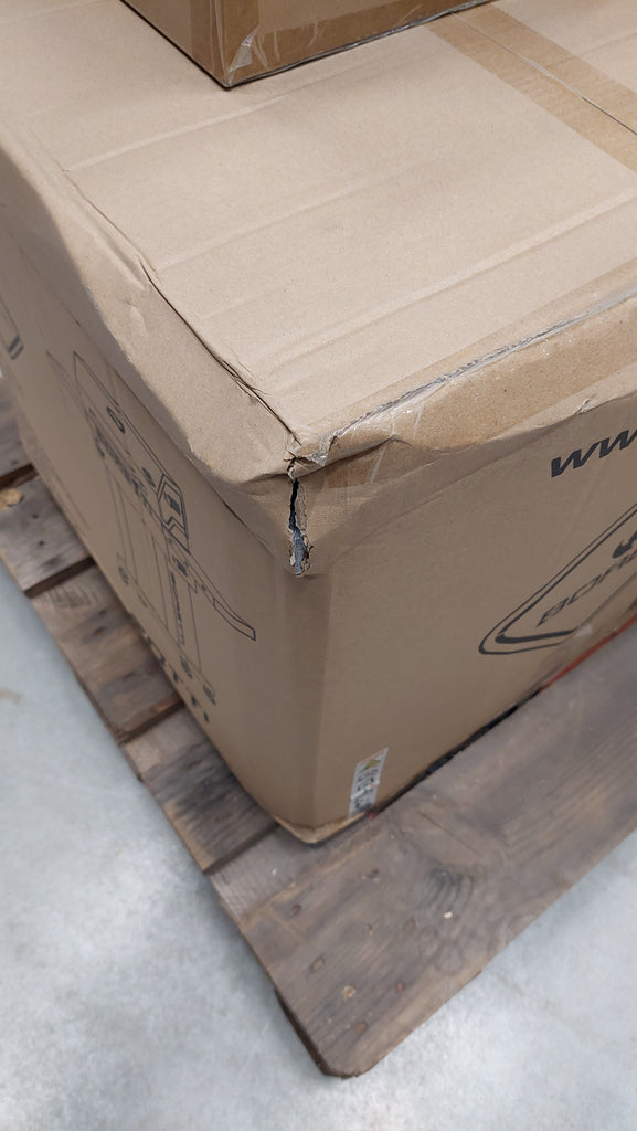 De getoonde foto toont een voorbeeld van de meest voorkomende verpakkingsschade, zodat u een goed beeld krijgt van wat u kunt verwachten. De daadwerkelijke schade aan de verpakking kan per exemplaar verschillen.